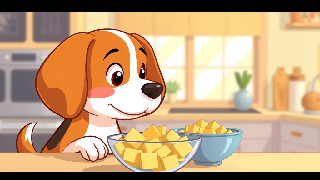 Cartoon dog enjoying healthy snack in kitchen