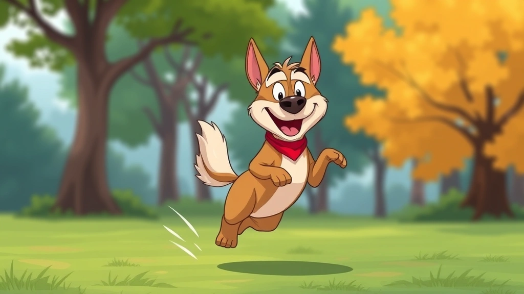 salmon oil for dogs - Cartoon golden retriever with shiny, healthy coat standing in a sunny meadow, pl